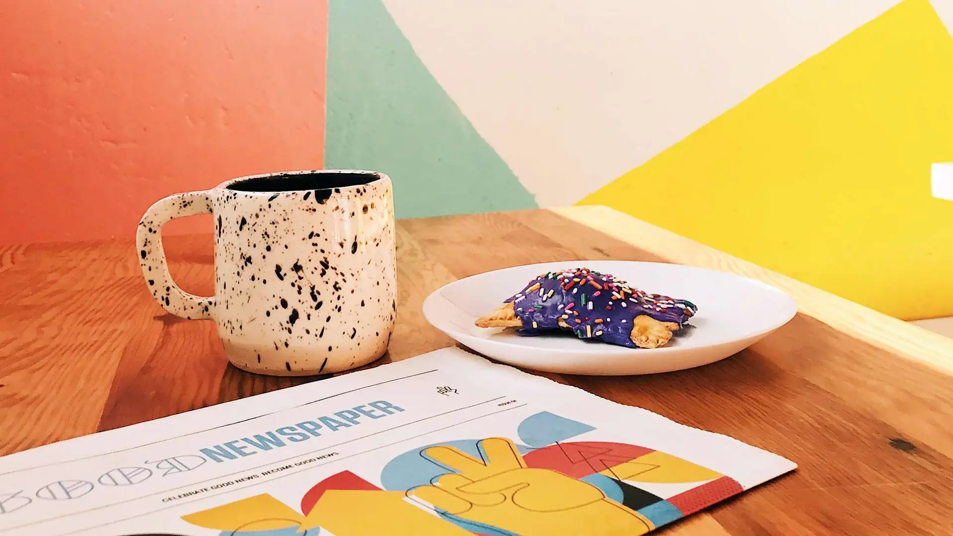 Enjoying a creative break with coffee.
